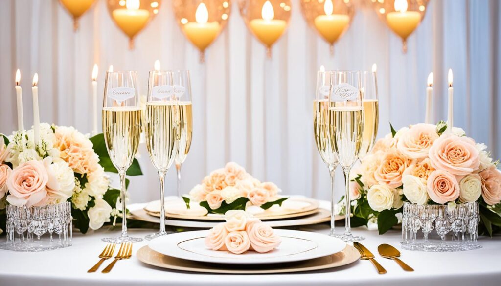 • Soluções decorativas elegantes e encantadoras para festas de noivado